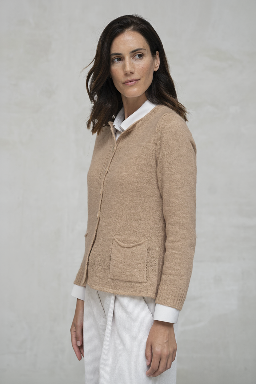 El cárdigan Sofi en camel jaspeado es una prenda imprescindible para sumar suavidad y estilo al armario. Su tejido de punto aporta textura, mientras que los botones a juego y los bolsillos delanteros lo convierten en un diseño cómodo y fácil de llevar. Perfecto para combinar con básicos diarios o para añadir una capa elegante en looks de entretiempo.