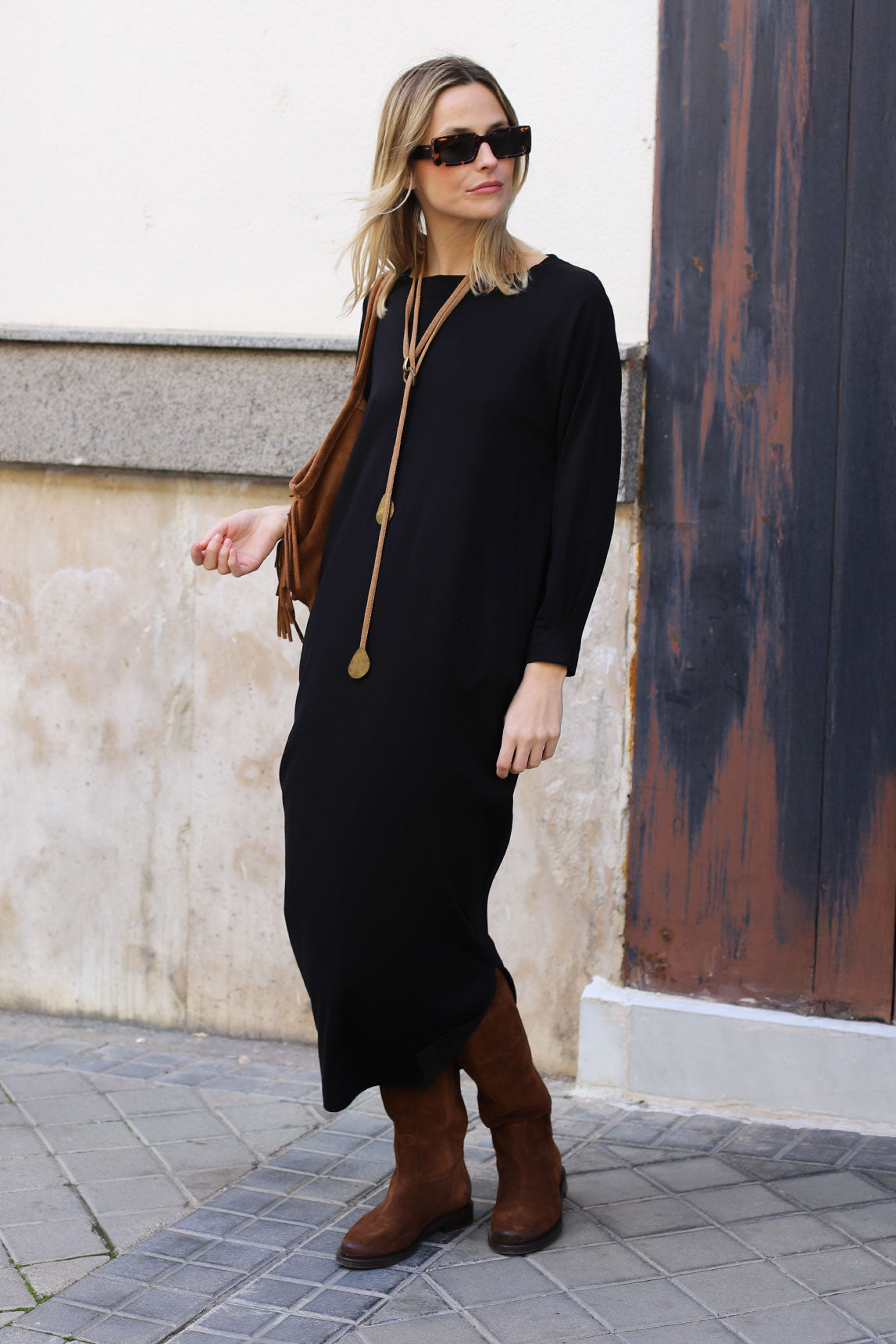 VESTIDO POSITANO GLOBO BOLSILLOS NEGRO
