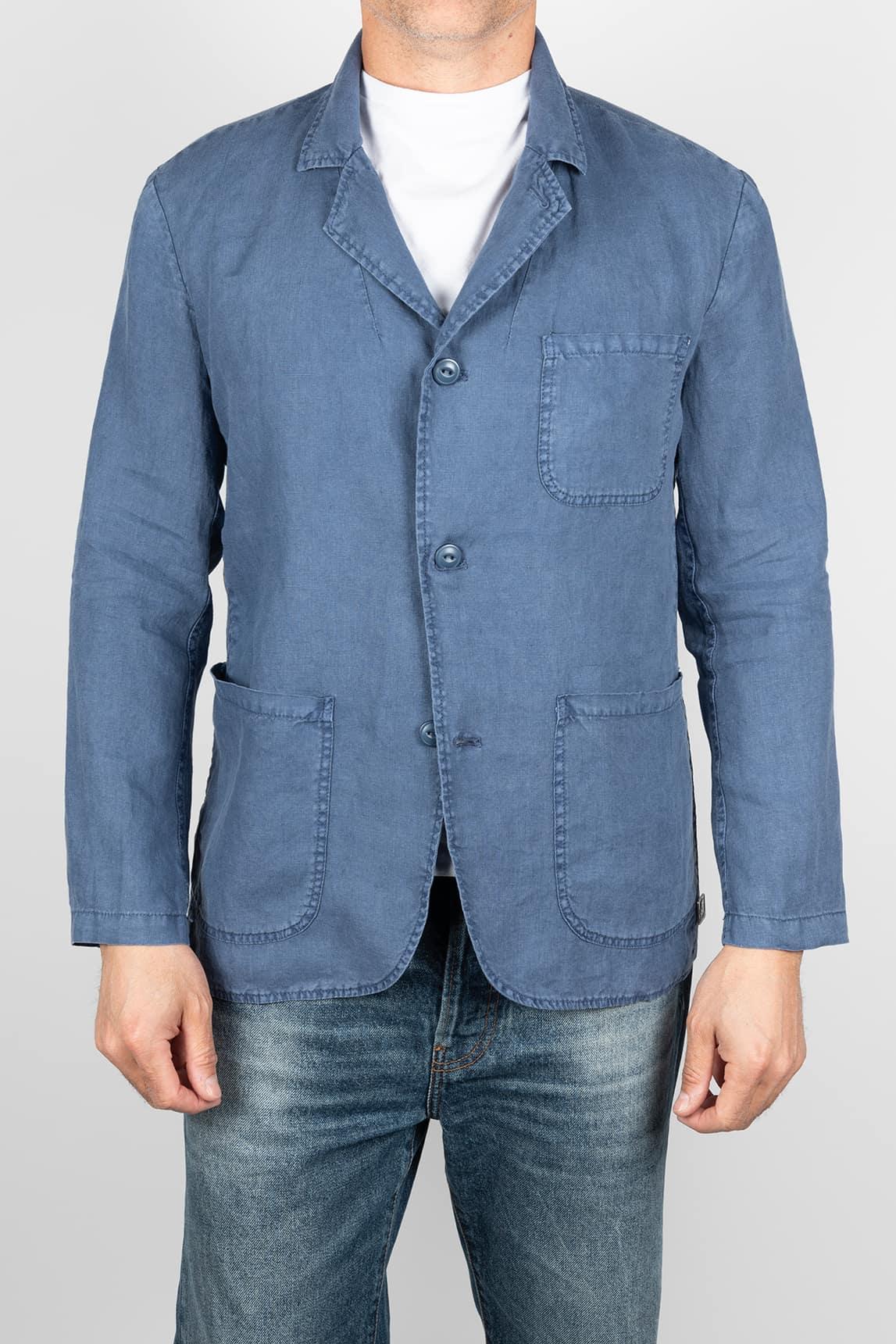 Esta americana en tono azul marino de la marca Keeling destaca por su acabado suave y ligeramente lavado, que aporta profundidad al color y un aspecto contemporáneo. Presenta cierre frontal con botones, solapa clásica y tres bolsillos de parche —uno en el pecho y dos inferiores— que refuerzan su diseño funcional. Su tejido de apariencia natural y su confección ligera permiten una caída fluida y cómoda.